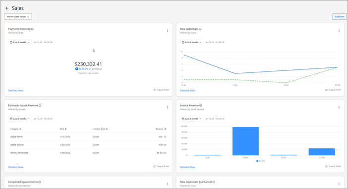 To view a particular report, click on its tile. You will see all of the metrics contained in this report. The metrics in this report can't be changed. However, you can Duplicate this report, which will create a Custom Report (more on those below) which can be edited. For more on changing the dates or adding filters, take a look at the section viewing a report below.