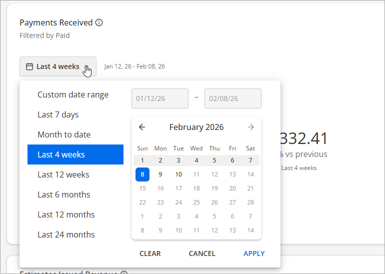Or, to change the date range for a single metric only, click on the available ranges at the top of the tile, or the More drop-down
