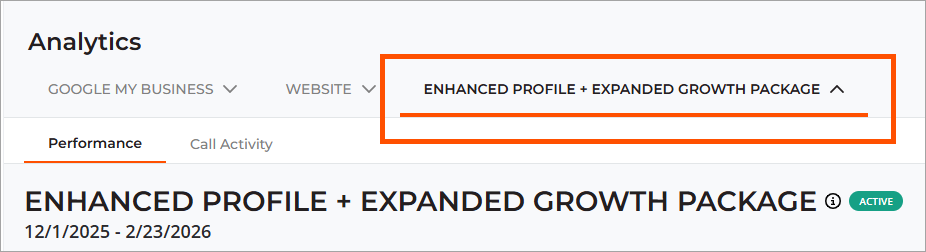 Growth Packages offer comprehensive reporting on their performance and calls generated. To view stats for your Growth Package, navigate to Analytics>Enhanced Profile + Growth Package