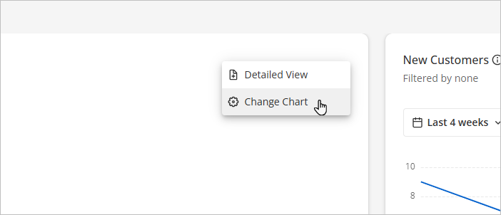 If you want to see your data presented differently, you can change the chart type. To do this, first click on the tri-dots on the tile of the selected metric, then click on Change chart