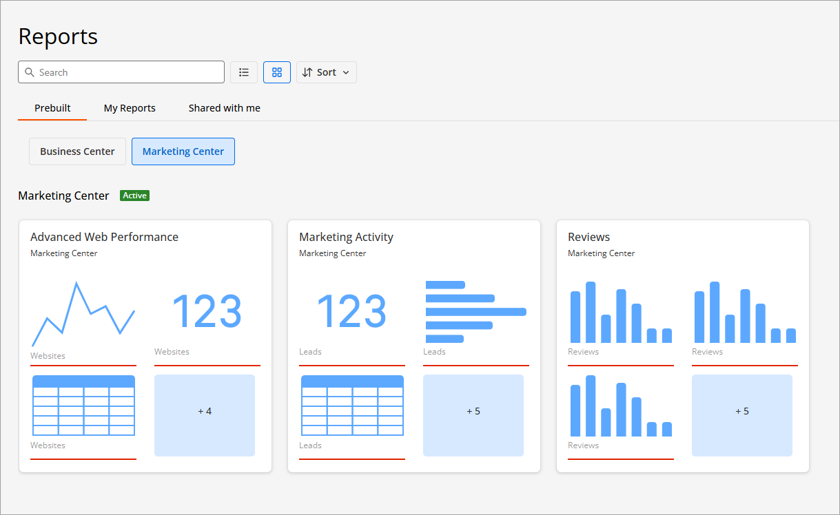 Your available reports will be divided into Thryv Business Center™ and Thryv Marketing Center™