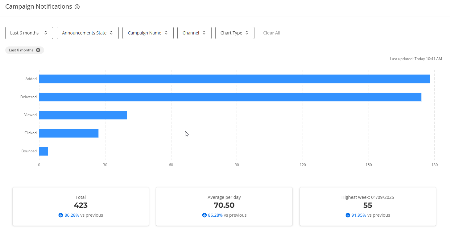 Regularly reviewing these insights also helps you maintain a healthy, professional relationship with your audience. You can easily spot trends, such as which channel (SMS or email) your audience are most responsive to.