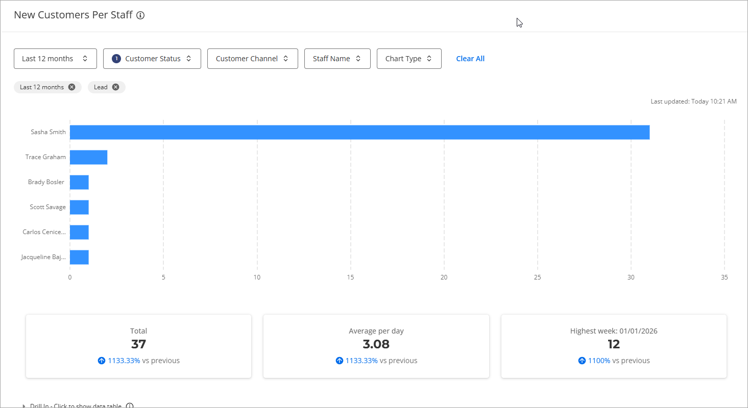 This report provides a clear, objective look at how your staff is engaging with customers, from the number of appointments booked to the speed and frequency of follow-ups. By staying on top of these metrics, you can celebrate your high-performers and identify areas where additional training or support might be needed.