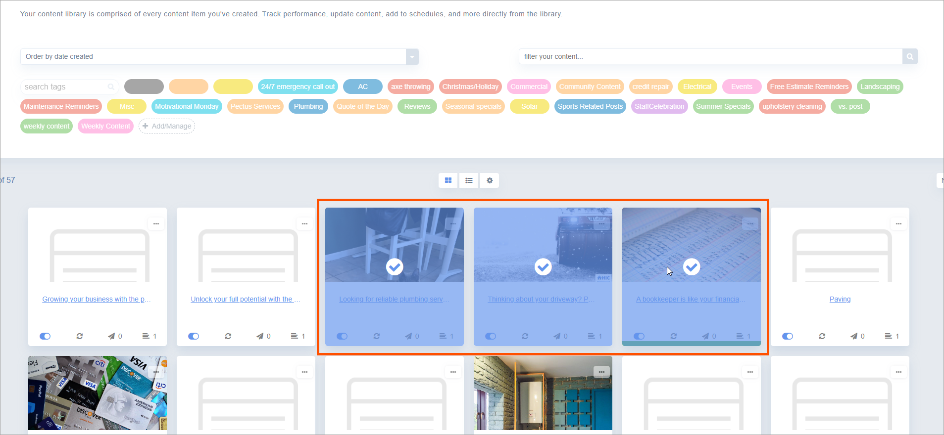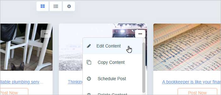 - Find a piece of content that should be in your schedule and click the three dots in the upper right corner. Then click Edit Content