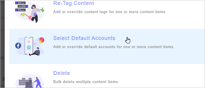 To apply this to multiple pieces of content at once, you can also change the default accounts of multiple pieces of content at once with Bulk Operations. To do this: