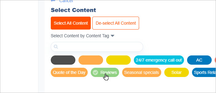 Or you can Select All Content, or choose your content by selecting one or multiple tags at the bottom of the page.