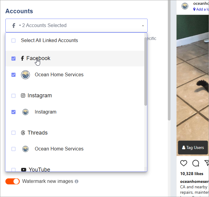 However, you may find that the category tags match for your schedule and content library yet your queue is still empty. You'll see in the upper right of my schedule that Pinterest and Instagram accounts are selected. You now need to check that the content also has at least both Instagram and Pinterest selected as well.