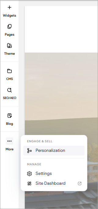 The left menu is where all of the widgets and features hang out until you're ready to use them. Here you can find tools to edit almost anything on your Site.