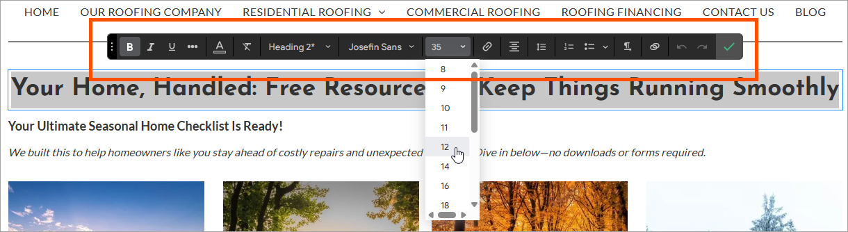 Highlight Key Information: Quickly change the size, style, or color of specific text to draw visitor attention to your most critical statements, prices, or calls-to-action.
