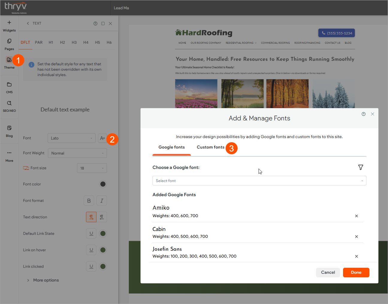 Yes. You can upload Google fonts, or upload your own custom font from the We unfortunately do not have a way built-in to our editor's interface to add your own fonts.