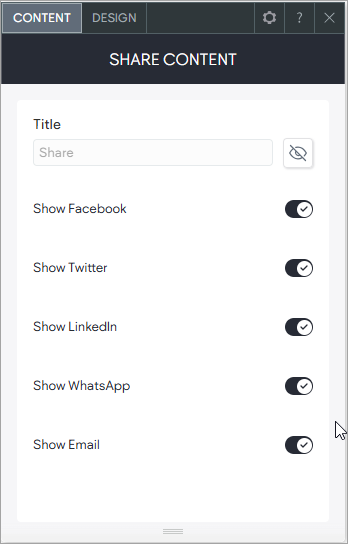 1. Drag and drop the Share widget anywhere on your page. To learn more about adding widgets to your website, see Adding Widgets.
