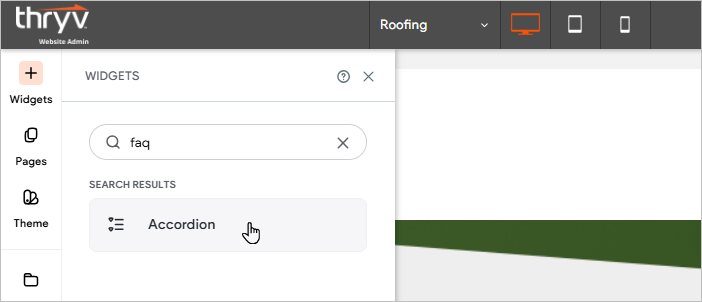- Drag & drop the accordion widget anywhere on your page. To learn more about adding widgets to your website, see Adding Widgets.
