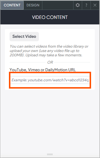 Enter the YouTube, Vimeo or Dailymotion video URL into the Editor.