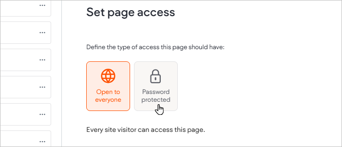 - Scroll down the "Set page access" section and Click the Password Protect button to be prompted to set your password.