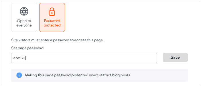 - Click Save. Your page is now protected by a password. You can remove this password at anytime by clicking Remove password.