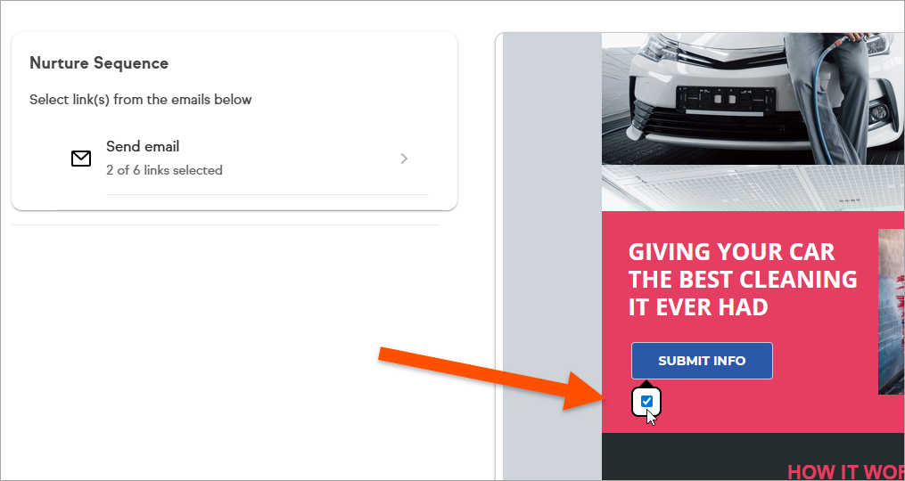 - On the left, you will see a list of the individual emails in the sequences that connect to this goal. Click on the email title to view the message and select the links that satisfy the goal.