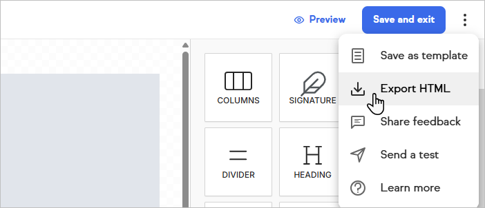 Click the Export HTML button inside the 3 dots menu for more flexibility and collaboration with your team.