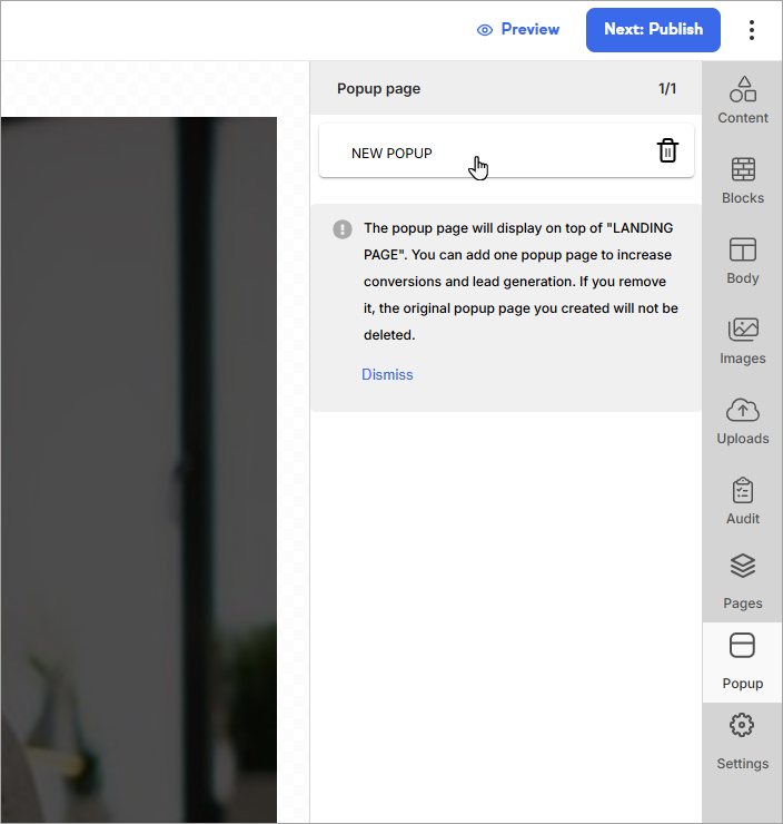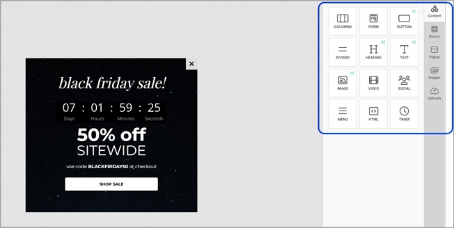 Start customizing your Popup using blocks (images, buttons, text, etc)