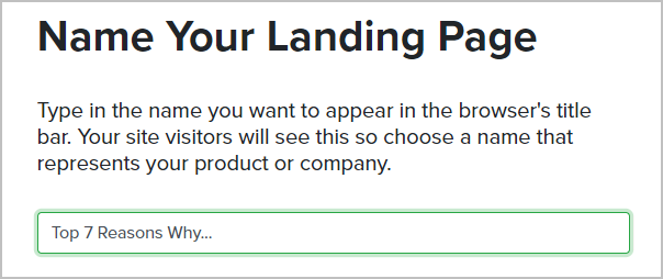 The name you type here will be shown in the browser's title bar. Your website visitors will see this, so make sure to choose a name wisely.