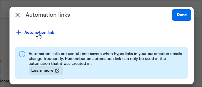 - Click the + Automation link button