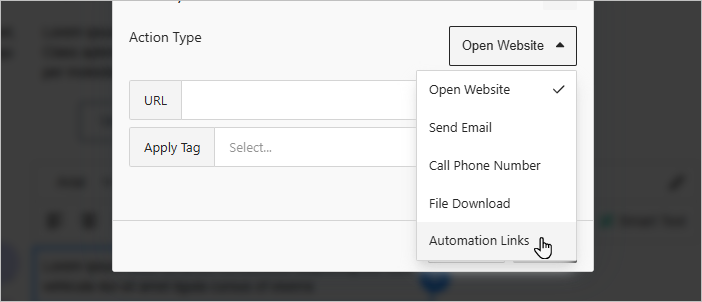 - Select Automation links from the drop-down.