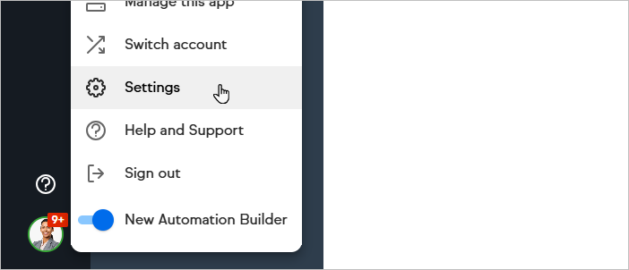 - Go to the Branding Center in the Settings page by selecting your avatar at the bottom left of the page and click Settings