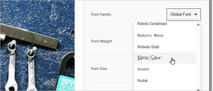 - Select your uploaded font from the font dropdown menu.