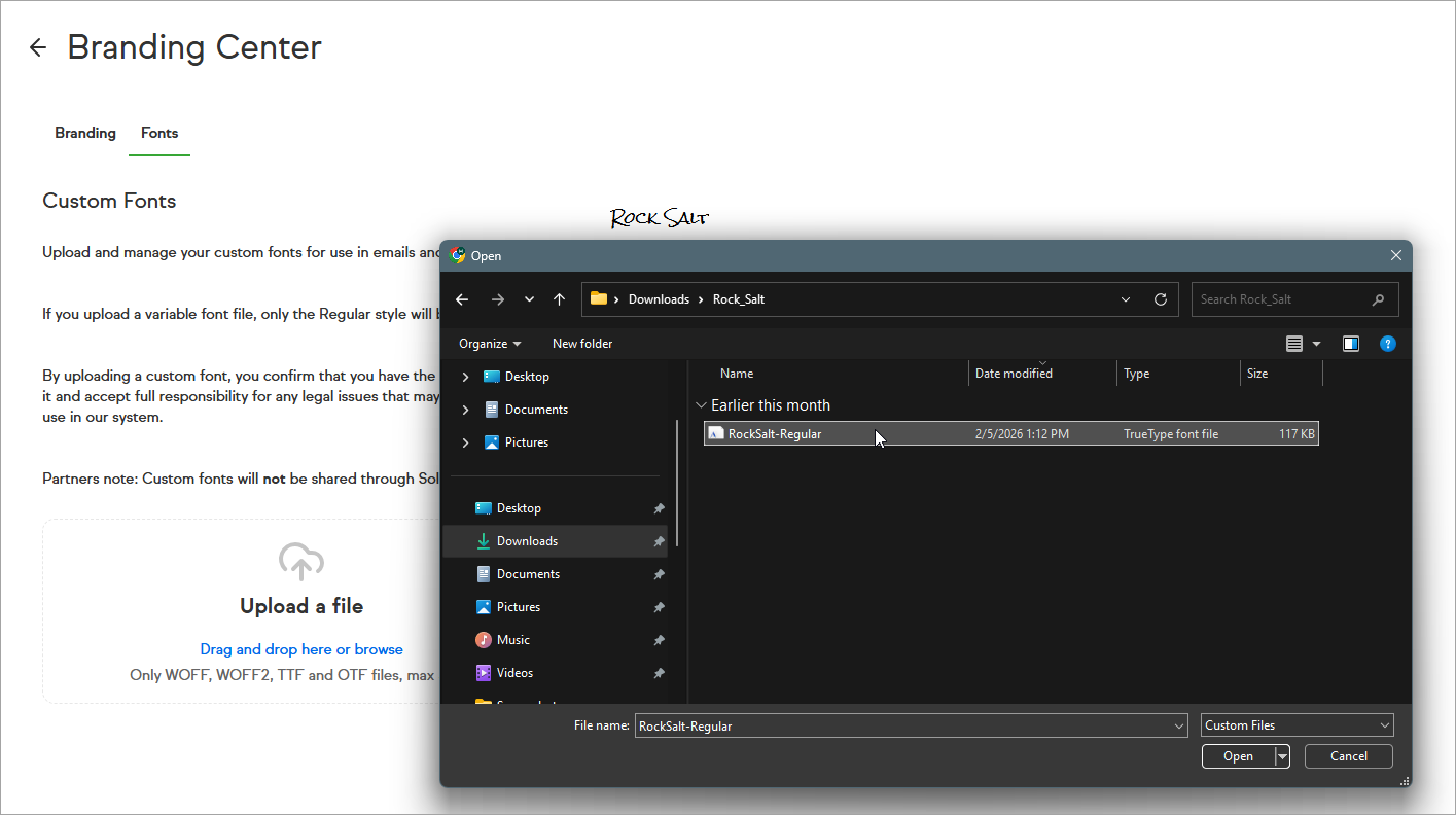 - Choose your licensed font file and upload.