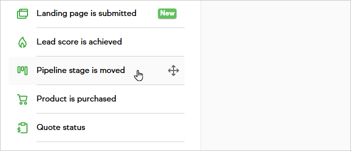 You can incorporate automation when a deal is moved into or out of a particular stage in your Pipeline.