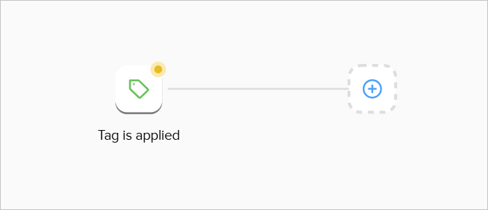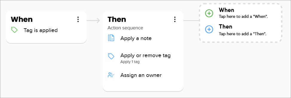 To add an element between this Tag is applied When and the Then Sequence, hover over the Tag is applied When to get the + to appear. Click the + to get the menu to appear, then select a Then.