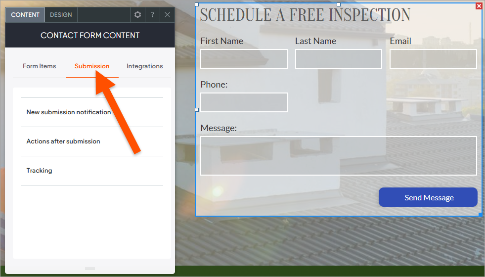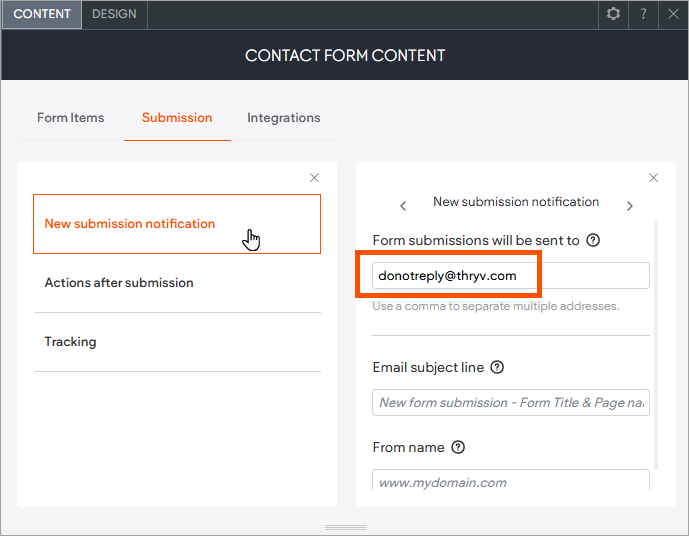 - Note that if the email field is left empty, form submissions will be sent to the first email address listed in your site's Content Library. To check this, go to CMS.